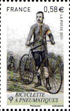 - En Mars 1861, le Vélocipède à Pédales (ancêtre du vélo actuel) est né grâce à Pierre Michaux, réparateur de draisiennes qui ajoute des pédales sur l'axe de la roue avant. Ceci permet de faire avancer la machine sans poser les pieds par terre en donnant un mouvement de rotation à la roue avant. Mais il faut pédaler vite pour avancer avec une petite roue à l'avant. Un timbre de France lui a été consacré en 1983.